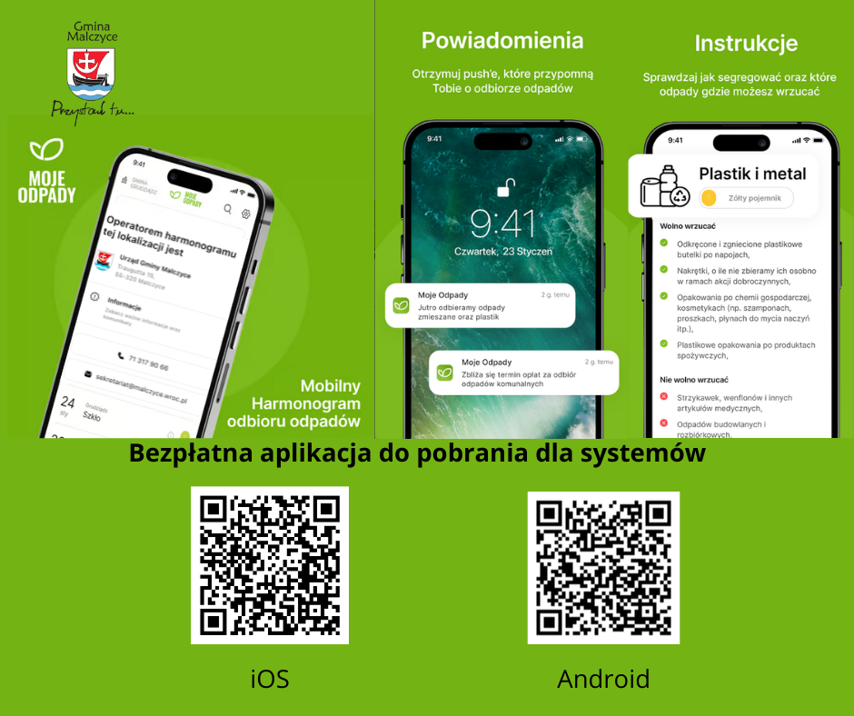APLIKACJA MOJE ODPADY! Bezpłatna aplikacja dla mieszkańców Gminy Malczyce!
