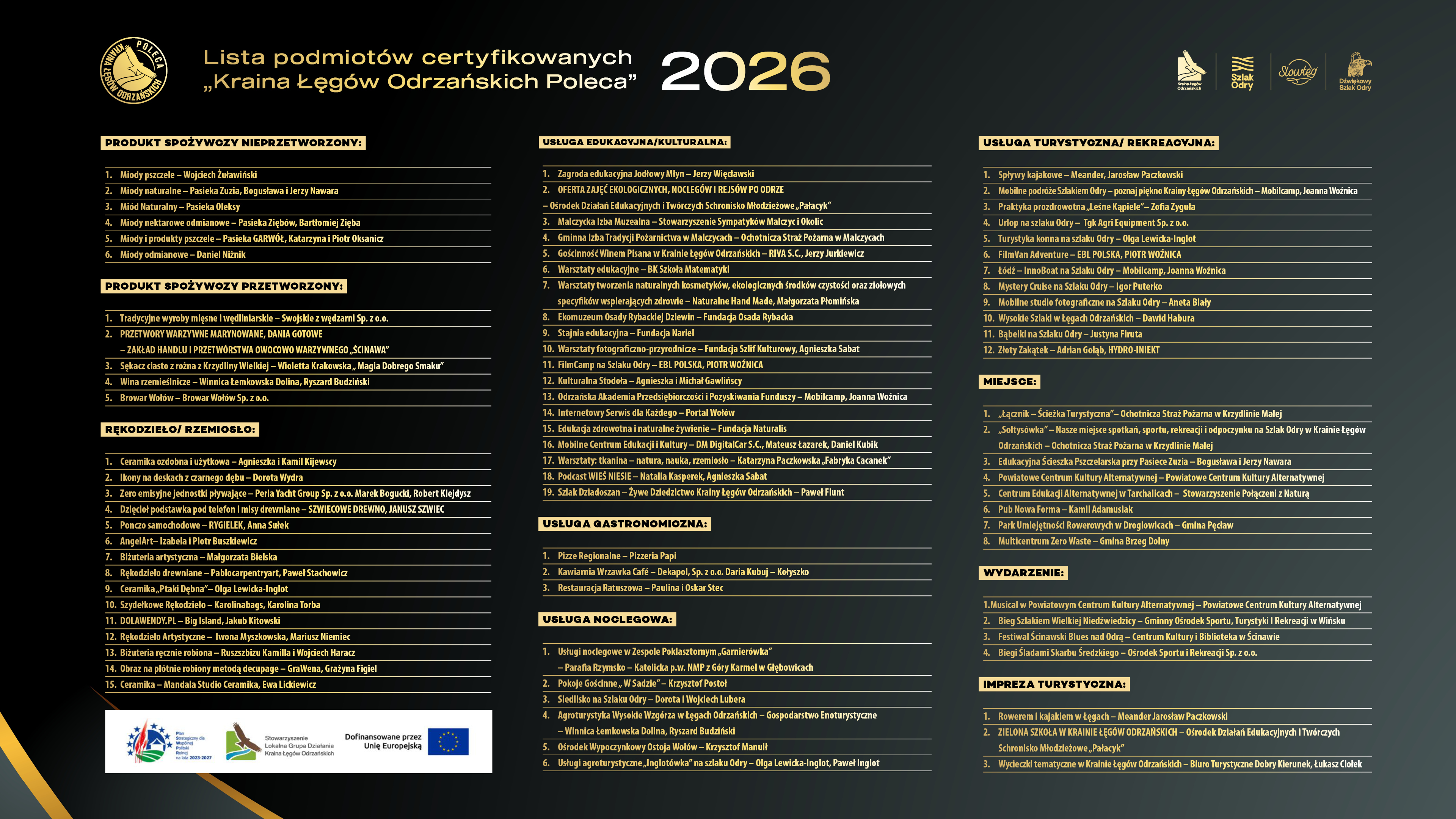 CERTYFIKAT KRAINA ŁĘGÓW ODRZAŃSKICH POLECA EDYCJA 2026